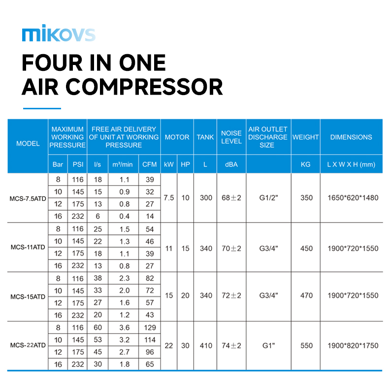 Máy nén khí trục vít 22 kW (30HP) tích hợp máy sấy khí – áp suất 8/10/12 bar, dùng cho cắt laser